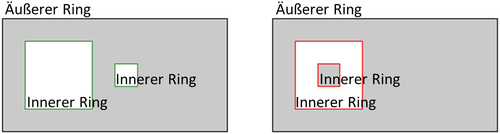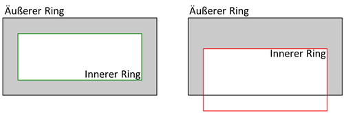 Abbildung 5: Polygon mit zwei korrekten inneren Ringen (links) und zwei verschachtelten, nicht korrekten inneren Ringen (rechts)